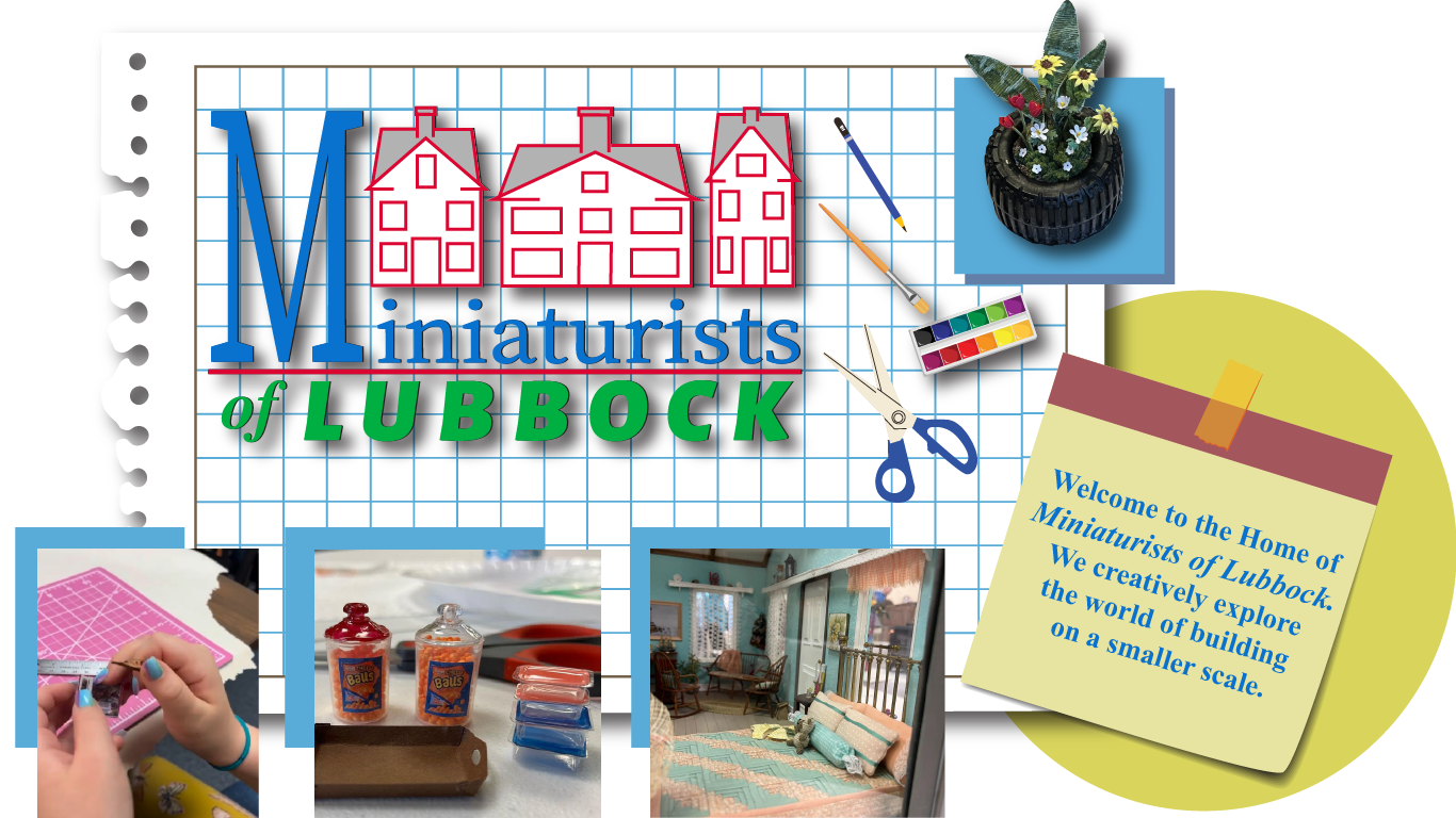 Miniaturists of Lubbock is a group of miniature enthusiasts that gather to share ideas, and sources, with the sole purpose of building miniatures. Members work in all scales, although 1/12 is the most popular.